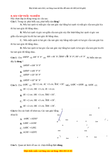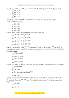 N ; BC NP . Để thì cần thêm đi u ki ề n gì ệ ? A. ABC M NP B. ABC MPN C. BAC NMP D. ACB MPN Câu 7. Cho hình v bê ẽ n, khẳng đ nh nà ị o sai? A. A HD A HE B. AH B A HC