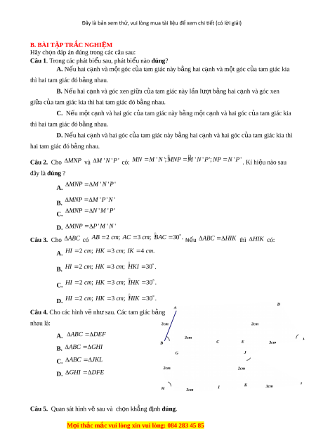Đây là bản xem thử, vui lòng mua tài liệu để xem chi tiết (có lời giải) B. BÀI T P Ậ TR C Ắ NGHI M Ệ Hãy ch n