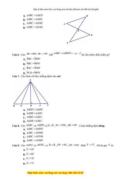 Đây là bản xem thử, vui lòng mua tài liệu để xem chi tiết (có lời giải) A. A BC A ED