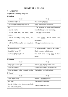 CHUYÊN ĐỀ 1: TỪ LOẠI A – LÝ THUYẾT
