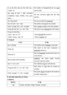 I. Vị trí của các từ loại trong câu 1. Danh từ Vị trí Ví dụ Sau tính từ (adj + N) That is a naughty boy.