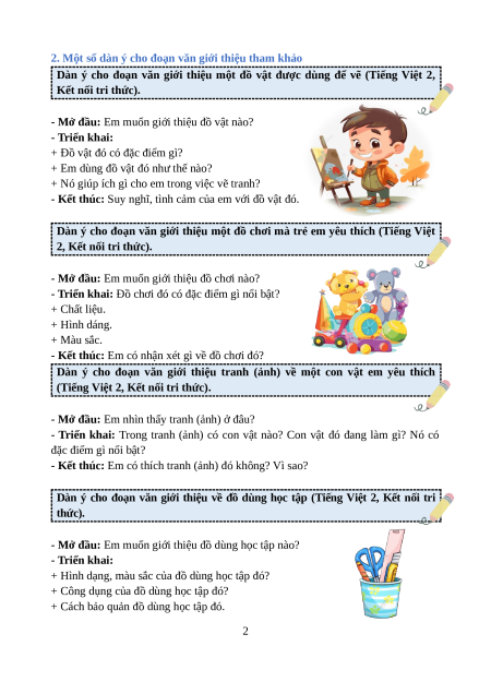 Dàn ý cho đoạn văn giới thiệu về đồ dùng học tập (Tiếng Việt 2, Kết nối tri thức).