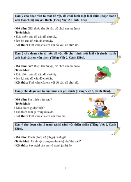 Dàn ý cho đoạn văn tả một đồ vật em yêu thích (Tiếng Việt 2, Cánh Diều).