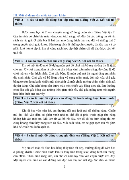 - Mở đầu: Em muốn tả đồ vật nào (đồ vật ở trường, đồ vật ở nhà, đồ thủ công em