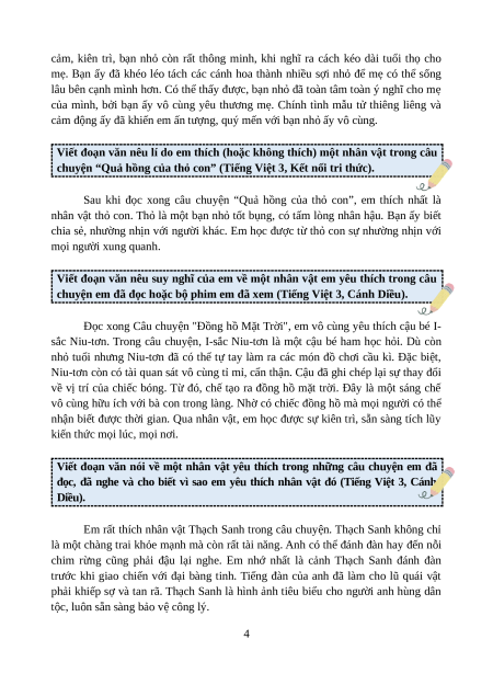 Dàn ý cho đoạn văn ngắn nêu lí do em thích nhân vật (Tiếng Việt 3, Kết nối tri thức).
