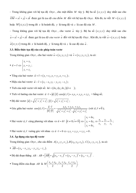 Trong không gian Oxyz , cho các điểm Ax y z B x y z , C x y z , ta có: