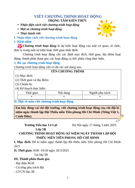 Chuyên đề Viết chương trình hoạt động lớp 5