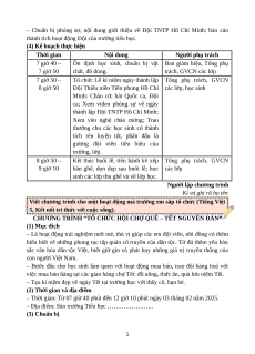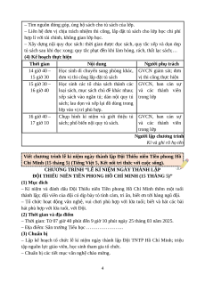– Lập kế hoạch tổ chức lễ kỉ niệm ngày thành lập Đội TNTP Hồ Chí Minh; triệu
