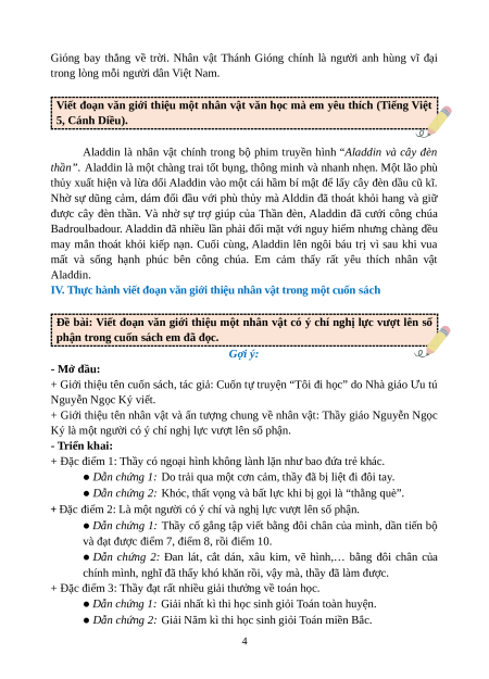 Chuyên đề Viết đoạn văn giới thiệu nhân vật trong một cuốn sách lớp 5