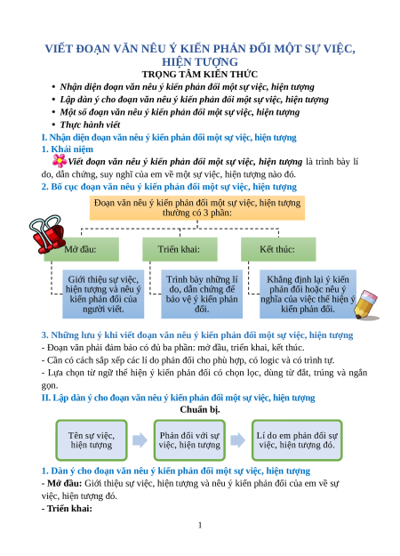 VIẾT ĐOẠN VĂN NÊU Ý KIẾN PHẢN ĐỐI MỘT SỰ VIỆC, HIỆN TƯỢNG