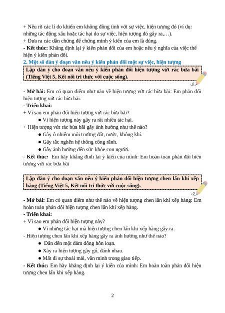 - Tailieugiaovien.com.vn giới thiệu Chuyên đề Viết đoạn văn nêu ý kiến phản đối một sự vật, hiện tượng lớp 5 chương trình sách mới nhằm hướng dẫn chi tiết cách viết đoạn văn nêu ý kiến phản đối một sự vật, hiện tượng lớp 5 (khái niệm, lưu ý, dàn ý các dạng, các bài văn mẫu) có trong chương trình Tiếng Việt lớp 5.