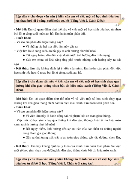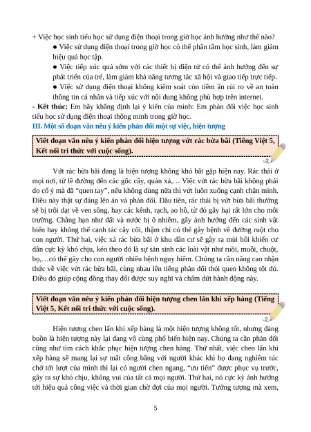 Chuyên đề Viết đoạn văn nêu ý kiến phản đối một sự việc, hiện tượng lớp 5