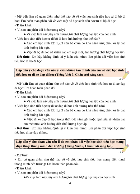Lập dàn ý cho đoạn văn nêu lí do em phản đối việc học sinh tiểu học mang