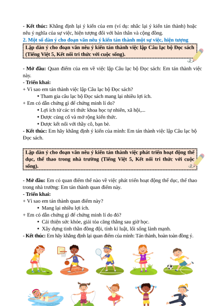 Lập dàn ý cho đoạn văn nêu ý kiến tán thành việc phát triển hoạt động thể