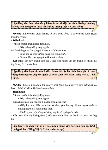 Lập dàn ý cho đoạn văn nêu ý kiến của em về việc học sinh tiểu học nên hay