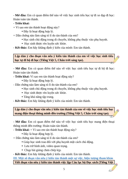 Chuyên đề Viết đoạn văn nêu ý kiến tán thành một sự việc, hiện tượng lớp 5