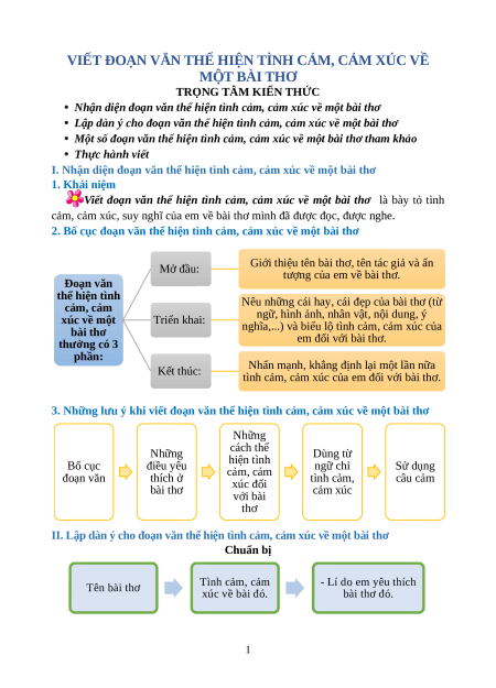 I. Nhận diện đoạn văn thể hiện tình cảm, cảm xúc về một bài thơ 1. Khái niệm