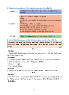 2. Bố cục đoạn văn thể hiện tình cảm, cảm xúc về một bài thơ Mở đầu: