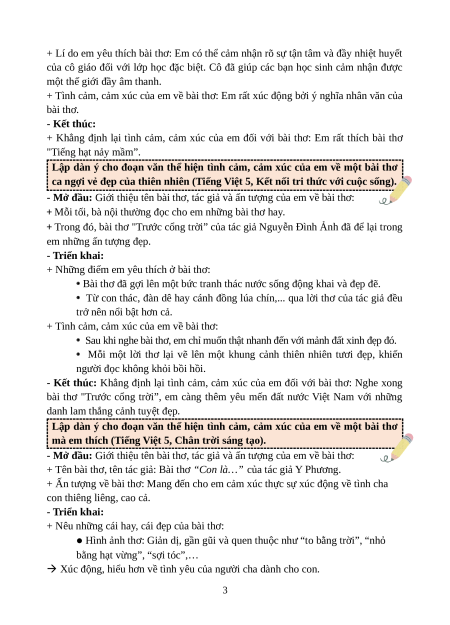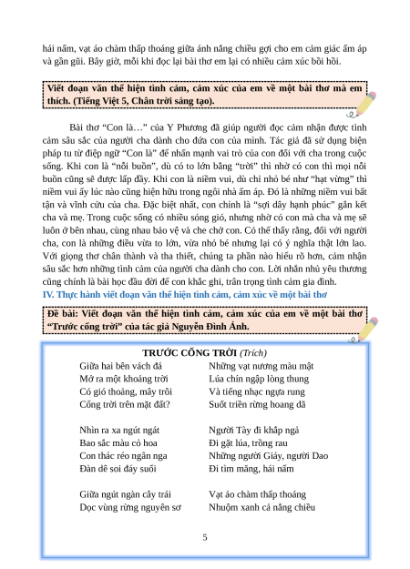Chuyên đề Viết đoạn văn thể hiện tình cảm, cảm xúc về một bài thơ lớp 5