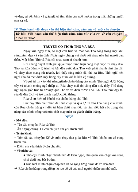 Đề bài: Viết đoạn văn thể hiện tình cảm, cảm xúc của em về câu chuyện “Rùa và Thỏ”.
