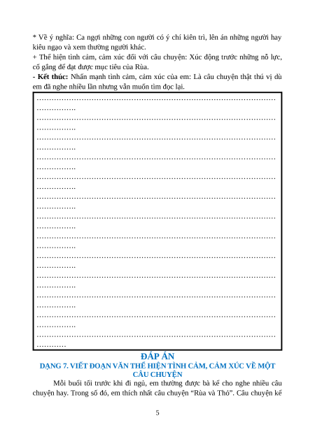 Chuyên đề Viết đoạn văn thể hiện tình cảm, cảm xúc về một câu chuyện lớp 5