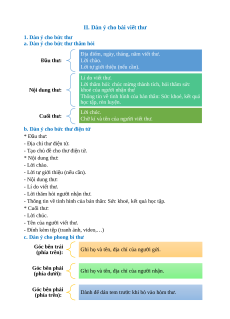 II. Dàn ý cho bài viết thư 1. Dàn ý cho bức thư