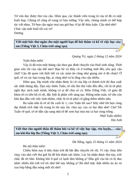 Viết thư cho bạn (hoặc cho người thân) ở xa (Tiếng Việt 3, Kết nối tri thức).