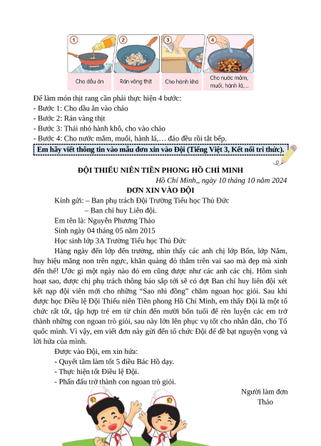 Em hãy viết thông tin vào mẫu đơn xin vào Đội (Tiếng Việt 3, Kết nối tri thức).