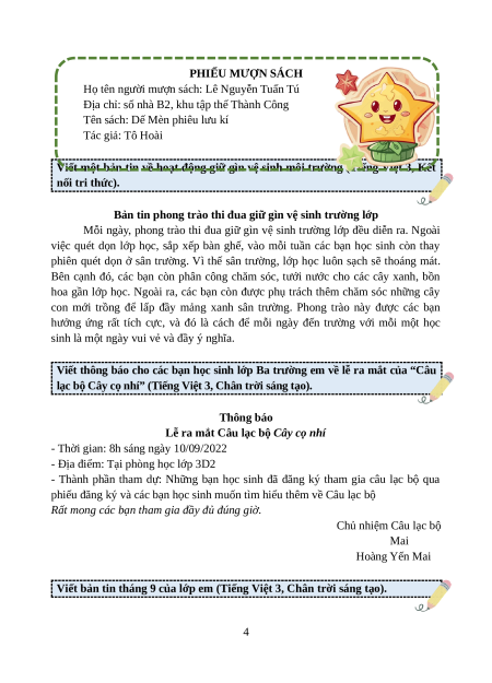 lạc bộ Cây cọ nhí” (Tiếng Việt 3, Chân trời sáng tạo). Thông báo