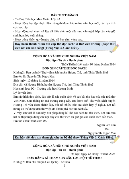 Viết bản tin tháng 9 của lớp em (Tiếng Việt 3, Chân trời sáng tạo). 4