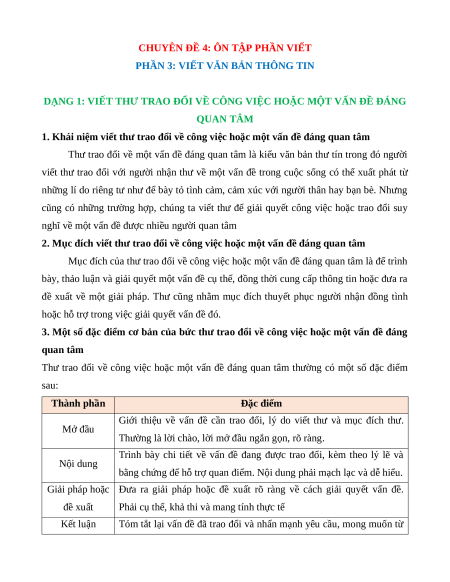 DẠNG 1: VIẾT THƯ TRAO ĐỔI VỀ CÔNG VIỆC HOẶC MỘT VẤN ĐỀ ĐÁNG QUAN TÂM