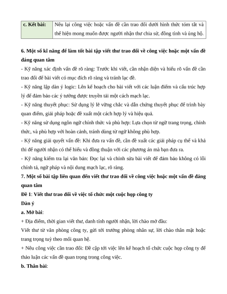 6. Một số kĩ năng để làm tốt bài tập viết thư trao đổi về công việc hoặc một vấn đề đáng quan tâm