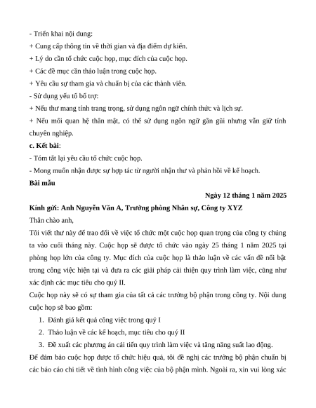 + Nêu công việc cần trao đổi: Đề cập tới việc lên kế hoạch tổ chức cuộc họp công ty để