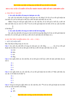 Đây là bản xem th , vu ử i lòng mua tài li u ệ đ xe ể m chi ti t ế (có l i ờ gi i ả ) BÀI 6: XÁC SU T Ấ C A Ủ BI N Ế C N Ố G U Ẫ NHIÊN TRONG M T Ộ S Ố TRÒ CH I Ơ Đ N Ơ GI N Ả A. TÓM T T Ắ LÝ THUY T Ế 1. Xác suất c a ủ bi n ế c tr ố ong trò ch i ơ gieo xúc x c ắ : Xác suất c a ủ m t ộ bi n ế cố trong trò ch i ơ gieo xúc x c ắ b ng ằ tỉ số c a ủ số các k t ế quả thu n ậ l i ợ cho bi n c ế và ố s c