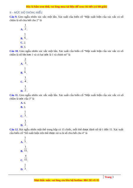 được lấy là số chia hết cho 3” là A. 5. B. 15. C. 4. D. 3. Trang 2 M i ọ thắc m c
