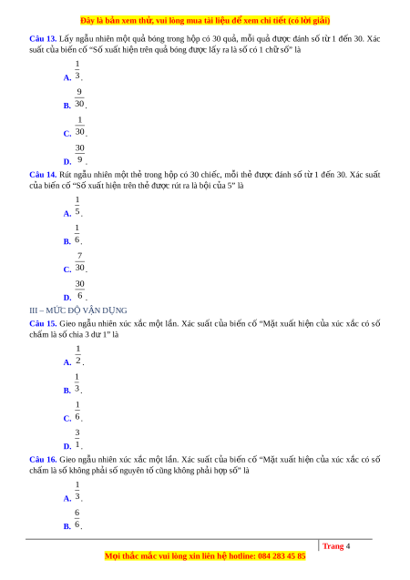 ất hiện trên thẻ được rút ra là b i ộ c a ủ 5” là 1 A. 5 . 1 B. 6 . 7 C. 30 . 30 D. 6 . III – M C Đ Ứ Ộ V N Ậ D N Ụ G