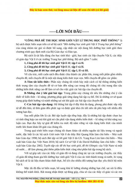 ThS. NGUYỄN PHÚ ĐỒNG, CÔNG PHÁ ĐỀ THI HỌC SINH GIỎI – VẬT LÍ 11, TẬP 1 2