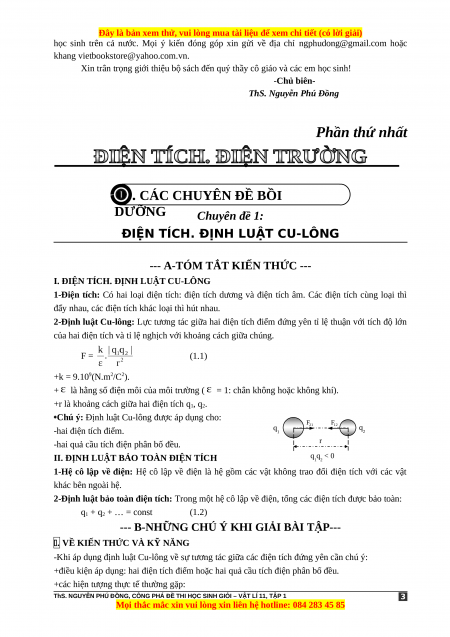 ThS. NGUYỄN PHÚ ĐỒNG, CÔNG PHÁ ĐỀ THI HỌC SINH GIỎI – VẬT LÍ 11, TẬP 1 1