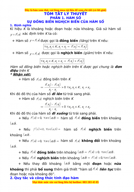 TÓM TẮT LÝ THUYẾT PHẦN 1. HÀM SỐ