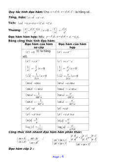 Công thức tính nhanh đạo hàm hàm phân thức: ; Đạo hàm cấp 2 : Page | 4