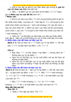 + là điểm cực đại của hàm số nếu tồn tại một khoảng chứa sao cho và . Khi đó