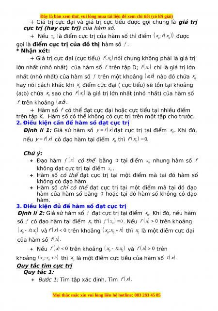 + Giá trị cực đại và giá trị cực tiểu gọi chung là cực trị.