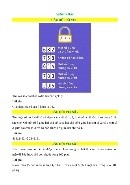 Dạng khác - Toán đố, Toán IQ (có lời giải)