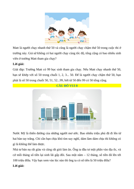 là số 50 trong dãy 50, 51, 52… 99, bởi từ 50 đến 99 có 50 số tổng cộng). CÂU ĐỐ VUI 5