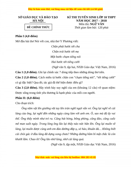 NĂM HỌC 2017 – 2018 Môn thi: NGỮ VĂN ĐỀ CHÍNH THỨC
