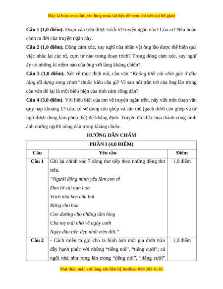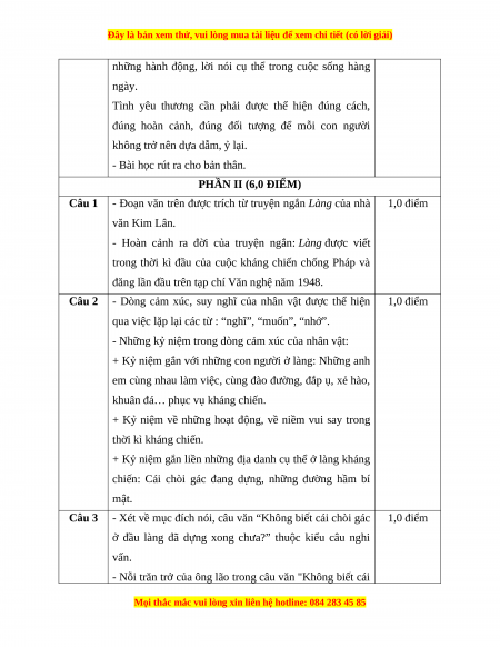 - Đoạn văn trên được trích từ truyện ngắn Làng của nhà 1,0 điểm văn Kim Lân.