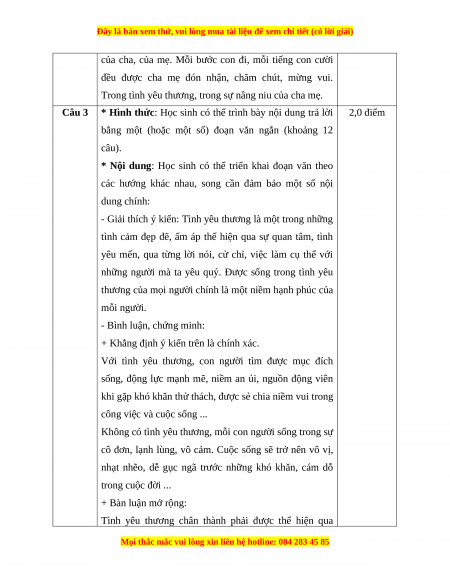 * Hình thức: Học sinh có thể trình bày nội dung trả lời 2,0 điểm