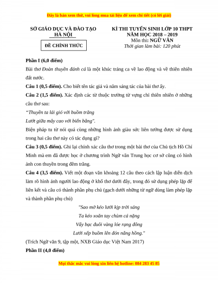 KÌ THI TUYỂN SINH LỚP 10 THPT HÀ NỘI