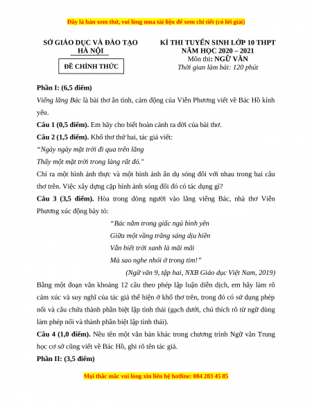 NĂM HỌC 2020 – 2021 Môn thi: NGỮ VĂN ĐỀ CHÍNH THỨC