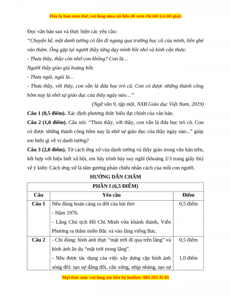 Câu 3 (3,5 điểm). Hòa trong dòng người vào lăng viếng Bác, nhà thơ Viễn